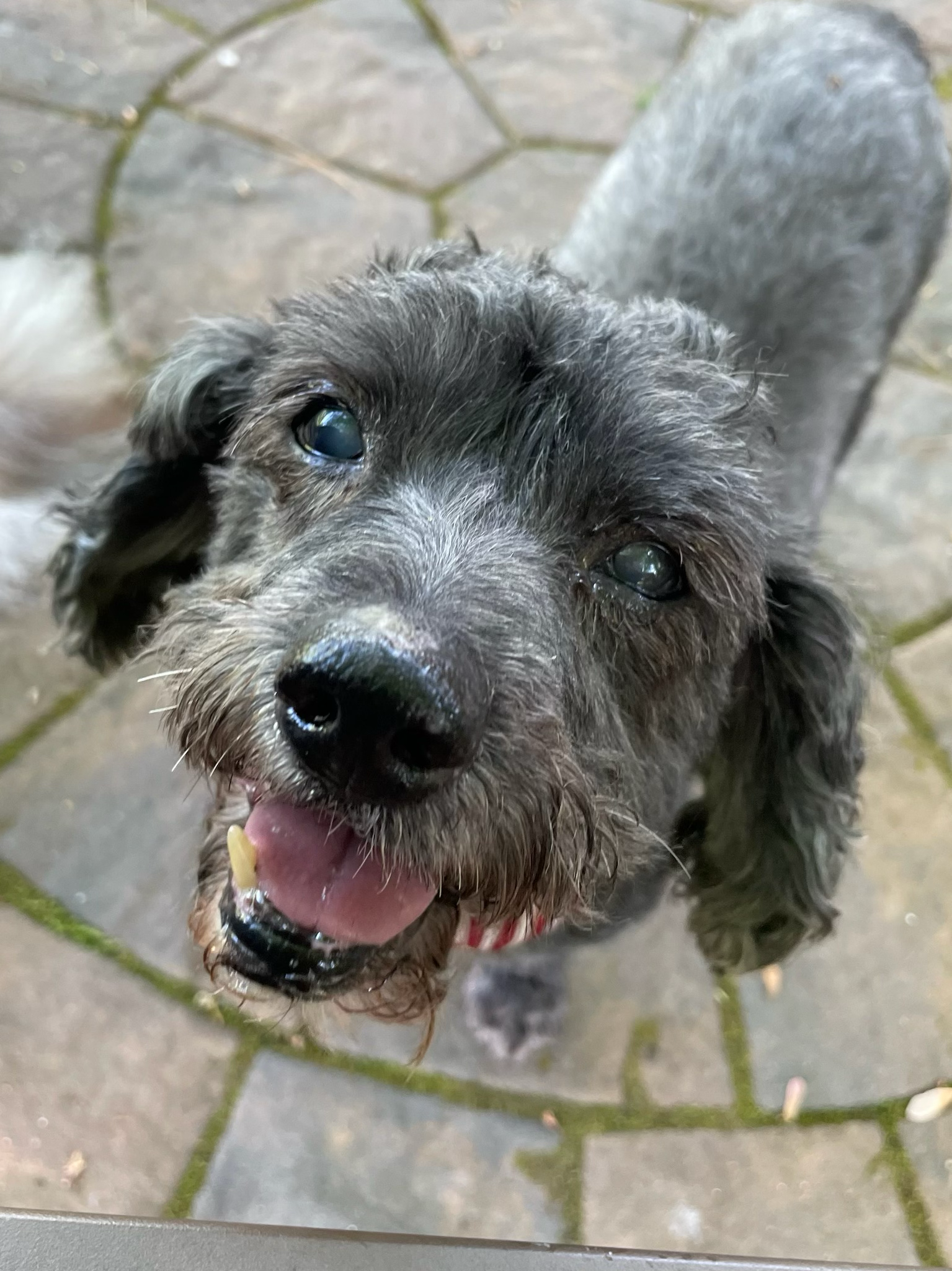 Poochini: Pooch joined the Leashes End Family in April 2024. His note from the shelter read: “Poochie is a distinguished gentleman and is calm…and so very gentle. He would love for someone to give him a soft quiet space where he can relax.” Look at this big smile! That was the face of 15-year-old Poochini. Poochini had a lot going on. A large mass inside his mouth. Multiple anal masses. A huge mass on his tail. Grade 3 dental disease. And to top it off, severe kidney disease, which made him a high risk candidate for surgery. So… Poochini was a hospice dog. We kept him as comfortable as we could for as long as we were able. And just look at that smile; Poochini never did get the memo about how sick he was! He just juiced the most out of life every single day. Poochie succumbed to his cancer in the summer of 2024, way too soon. RIP Poochini; may your memory be a blessing.