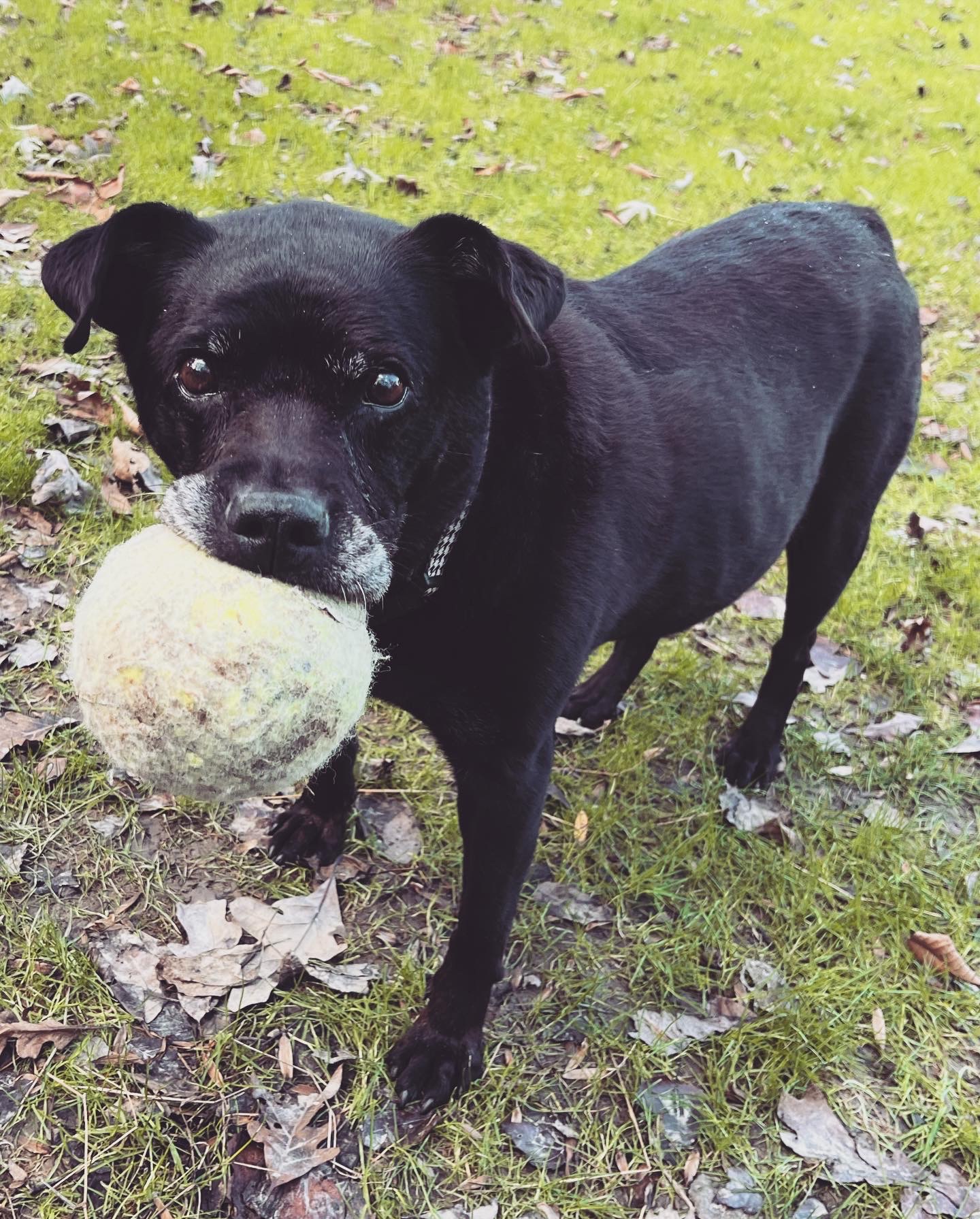 Olive B: In late November, 2023, our sweet Olive B passed peacefully in her sleep. Olive B had been with Leashes End for nearly a year. She had joined us in late December 2022. So we kicked off 2023 with a new frosted face in our midst and ended the year saying goodbye to her. Extremely food-motivated, able to reach cat food on countertops, and with no problems barging through most pet gates, 15-year-old Olive B kept things lively! In September 2023, Olive was diagnosed with Cushing’s. That explains why she slowed down a lot over the past few months of her life. We will miss this sweet girl. RIP, Olive B, may your memory be a blessing. Z”L.