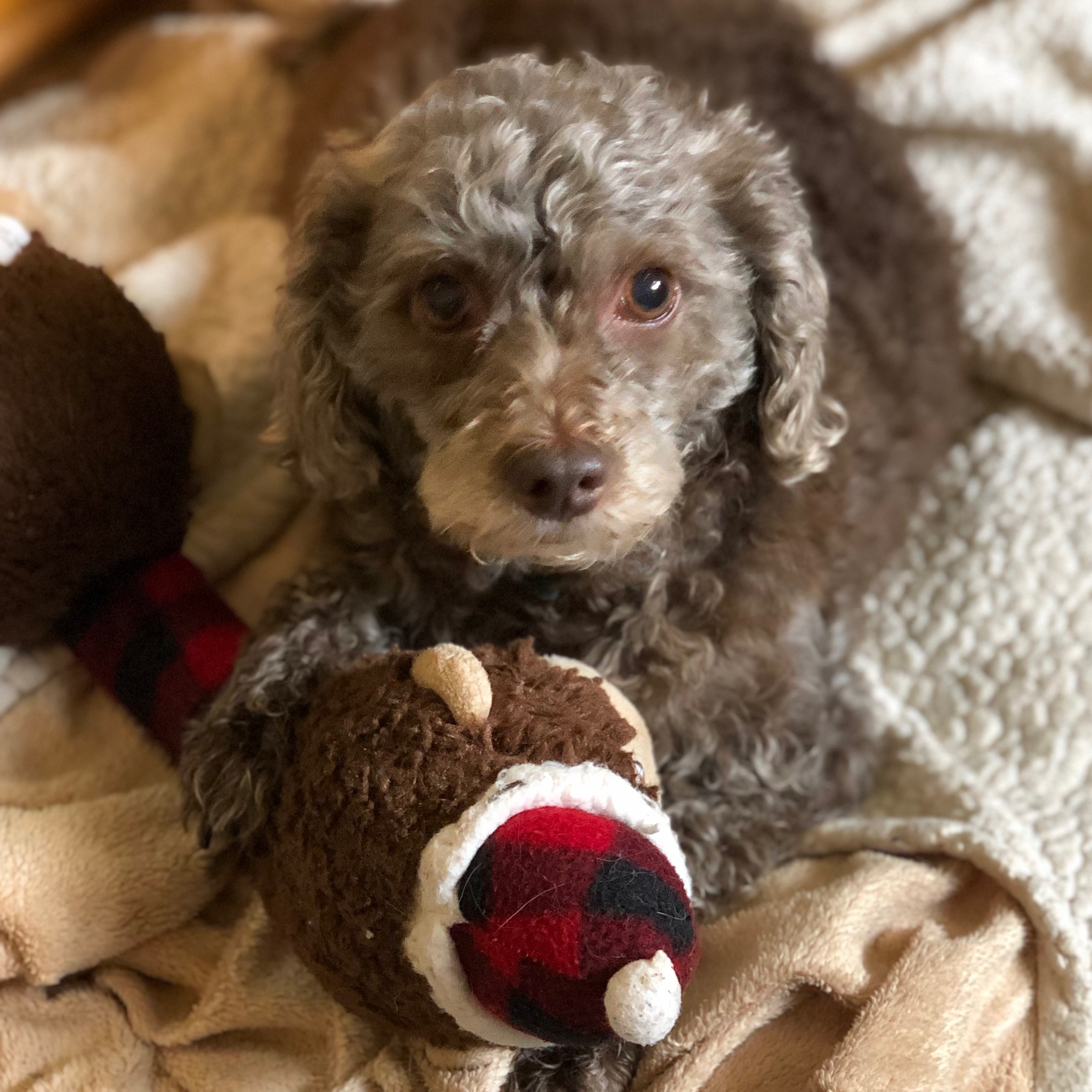 Tootsie: 13-year-old Tootsie joined the Leashes End family in October 2019. Kelley, who is a groomer, took on Tootsie as pro bono case in August, 2019. This poor girl desperately needed to be groomed and to see the vet. Her fur was so matted it was painful; her filthy skin beneath was covered in sores. Her nails were so overgrown she could barely walk. She could scarcely peer out to see beyond the shock of fur covering her eyes. Ugh… and the smell of her! But when Kelley called to schedule Tootsie’s next grooming, she learned that her owner had moved out of state and left Tootsie behind! We immediately took her into the Leashes End family so we could tend to her numerous veterinary and other needs! Tootsie blossomed into a very confident, sweet, and affectionate girl, but with a wild streak, making her a perfect Leashes End pup. Tootsie passed away in early 2024. RIP, Tootsie; may your memory be a blessing.