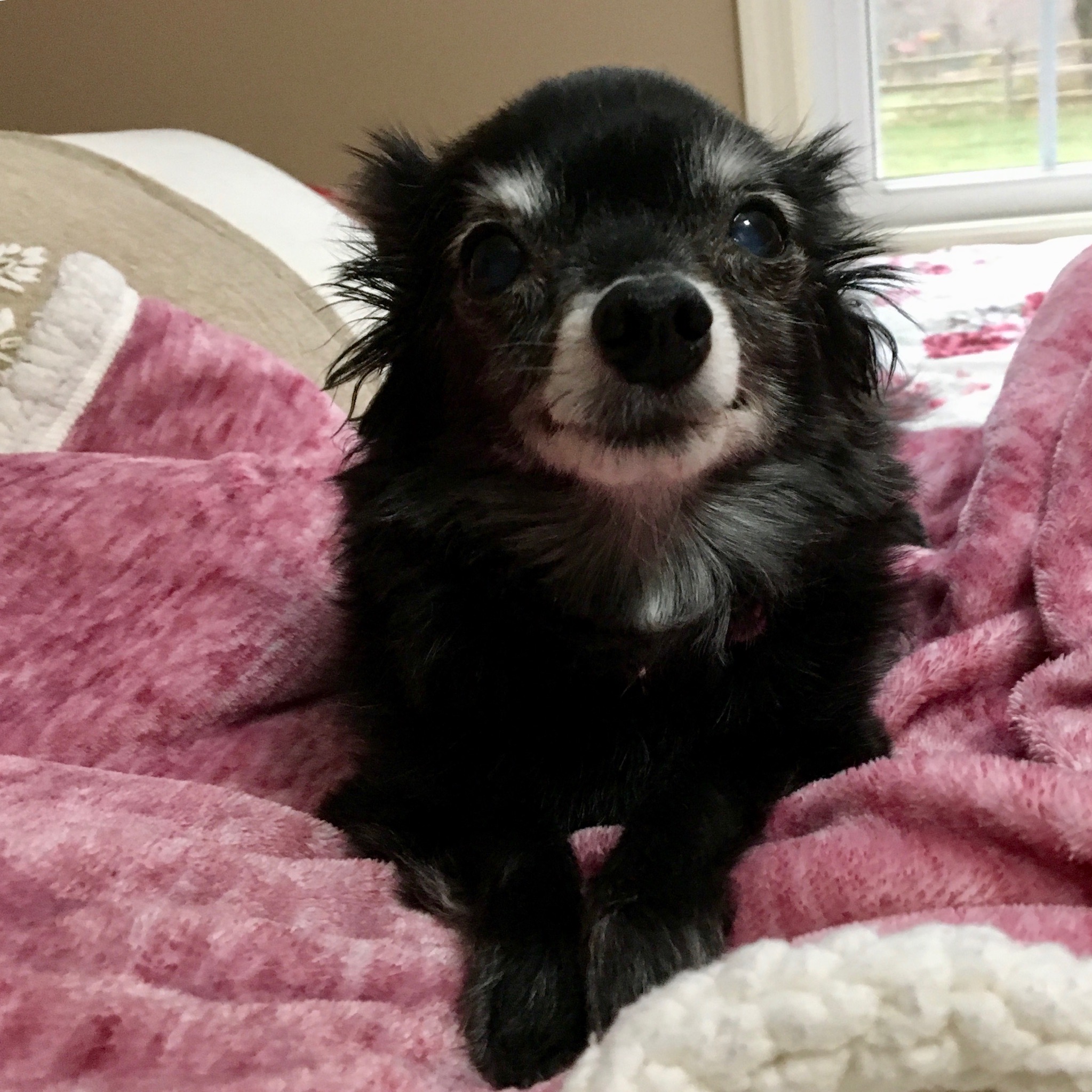 Stella: Our feisty 16-year-old Stella had an apparent stroke during the night of 20-21 September 2020. Her passing took us by surprise and we are just grateful that it was quick and peaceful. Stella joined the Leashes End family in March 2019. Her mouth had been neglected for so long, her teeth were so rotten, that the vet feared some extractions would cause her jaw to deteriorate! She came to us nearly blind with nuclear sclerosis and limping from a luxating patella. And she was so matted from head-to-toe, it took three days to clear them. But none of that slowed her down. Stella bounced back quickly from her surgery and acclimated to life at Leashes End in no time. She was such a spitfire, always the first to run barking out the door at neighbors walking down the street. She was a perfect fit with the rest of our high-energy Chihuahua hooligans! Yet for all that, if you could catch up to her, she’d reward you with sweet nose kisses. But just for a minute! Then she’d squirm to be put down so she could run off and chase someone! RIP, Sweet Stella. I will miss your sweet, tiny furor. May your memory be a blessing for this house and all who knew and loved you. Z”L.