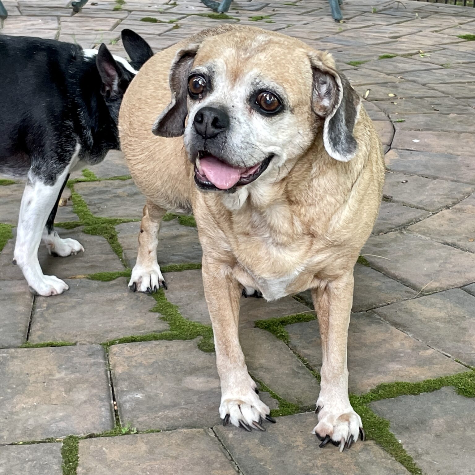 Sadie: In the very early hours of 18 December 2022, I helped Sweet Sadie cross over. Sadie developed a weakness in her hind legs earlier in the month. Despite treating her first with NSAIDs and later steroids, her condition deteriorated. Suspecting Intervertebral Disc Disease (IVDD), we scheduled a neurology consult. Sadly, Sadie didn’t make it to her appointment. One insidious symptom of IVDD is urinary incontinence. Sadie was unable to eliminate on her own and grew increasingly resistant to having her bladder expressed even with the help of muscle relaxants & heavy duty pain meds. By early Sunday, Sadie was in extreme discomfort & distress. 16-year-old Sadie and and her bonded sister Chica joined the Leashes End family in April, 2022. These two lovely pups had gotten stuck in traffic at the Montgomery County Animal Services shelter for six weeks! Neither private adopters nor local shelters wanted these two girls. So we took them! Following a much-needed dental & the excision of a volley-ball-sized tumor from her hip, Sadie was unstoppable! She NEVER missed a walk and especially loved hiking with Resident Staffer Kari. That is until her legs failed her. Sadie had the most beautiful and expressive faces. Losing Sadie is agonizing. We will miss her forever. Z”L, Sadie. May your memory be a blessing and May you blaze many green trails in doggy heaven.