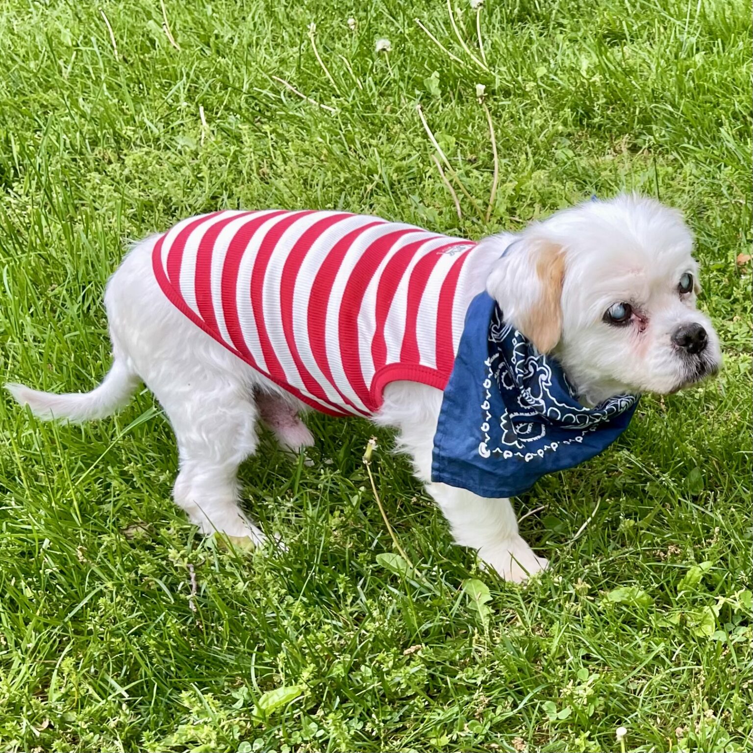 Bo Jangles: Our sweet 15-year-old Bo Jangles passed in his sleep sometime after midnight on 23 June 2023.Our veterinarian had detected low levels of inflammation, likely indicative of cancer. And it looks like Mina knew all along! But we didn’t understand that her persistent licking of Bo’s back was a medical alert. Bo joined the Leashes End family in late March 2023, accompanied by a bonded senior lady named Mina. Both pups had had been dumped at the Allegany County Shelter in the dead of night! Bo was a blind & deaf chonker (possible Shih Tzu) & Mina is a 12-year-old brindle mix. Mina & Bo were as bonded as could be! Mina spent the night after Bo passed sleeping on my pillow by my head. FOACASMD.org had pulled these pups from the shelter and asked us if we would give them a home. Bo was a classic senior: he spent most of the day snoozing with relief and food/water intermissions to break up the marathon napping. Mina is very alert and active and loves romping with the pack! She sticks extra close to me now and I’ve also noticed her spreading her protective aegis over our other senior dogs. RIP, Bo. May your memory be a blessing.