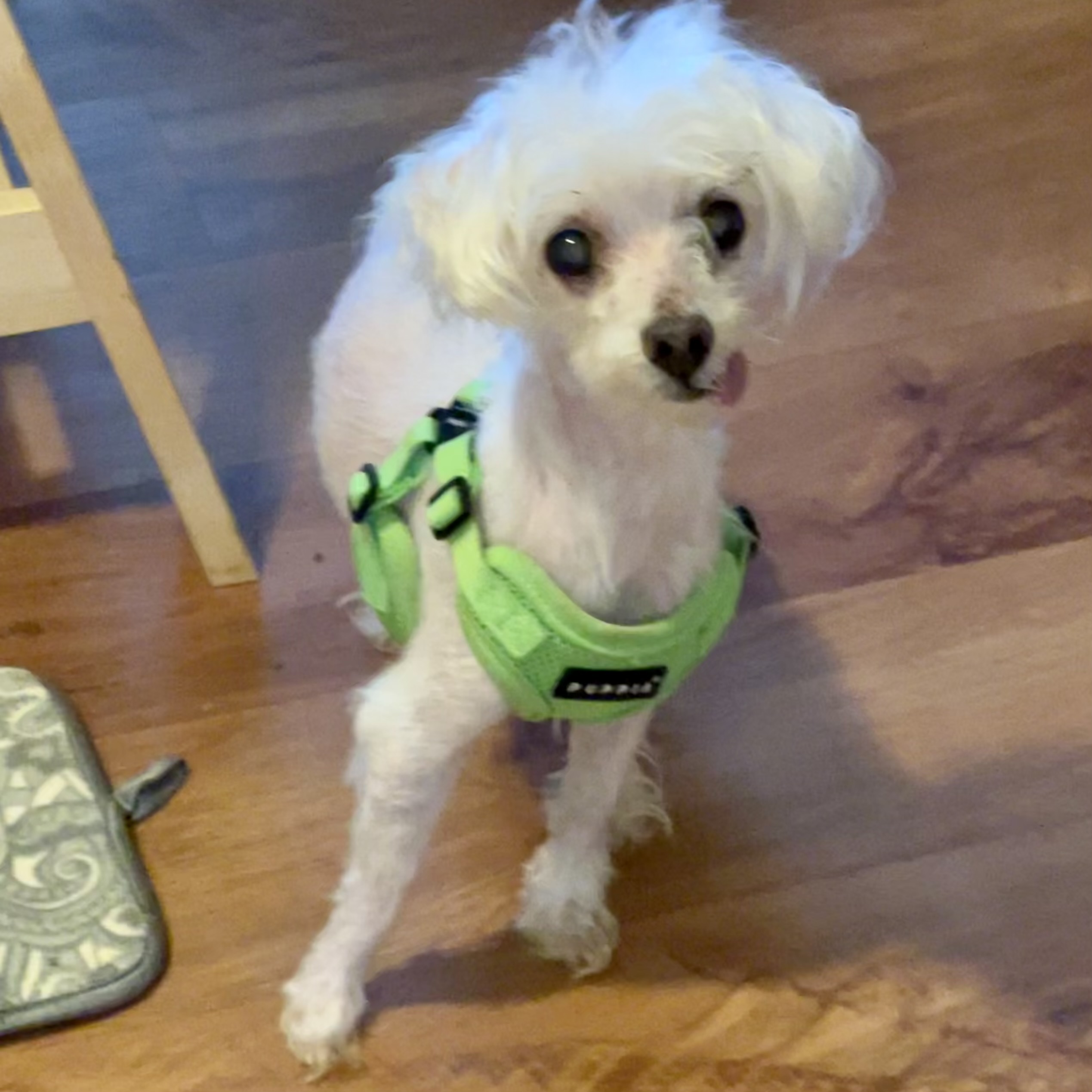Leopold: In early November, 2023, we said goodbye to our sweet 18-year-old Leopold. He had only just joined the family on August 31st, which is too, too short a time. You could lose yourself in his beautiful, huge brown eyes and stare for hours at his derpy tongue. Leo had been languishing at the PG County Shelter, which is no place for a tiny, frail 18-year-old, particularly one with as many health issues as Leopold. Our vet told us from the beginning to just keep him comfortable for as long as we could. And if great food, fun walks, soft napping spots, and snuggling with me in bed at night counted, then we accomplished our mission. RIP, dear Leopold. May your memory be a blessing, Z”L.