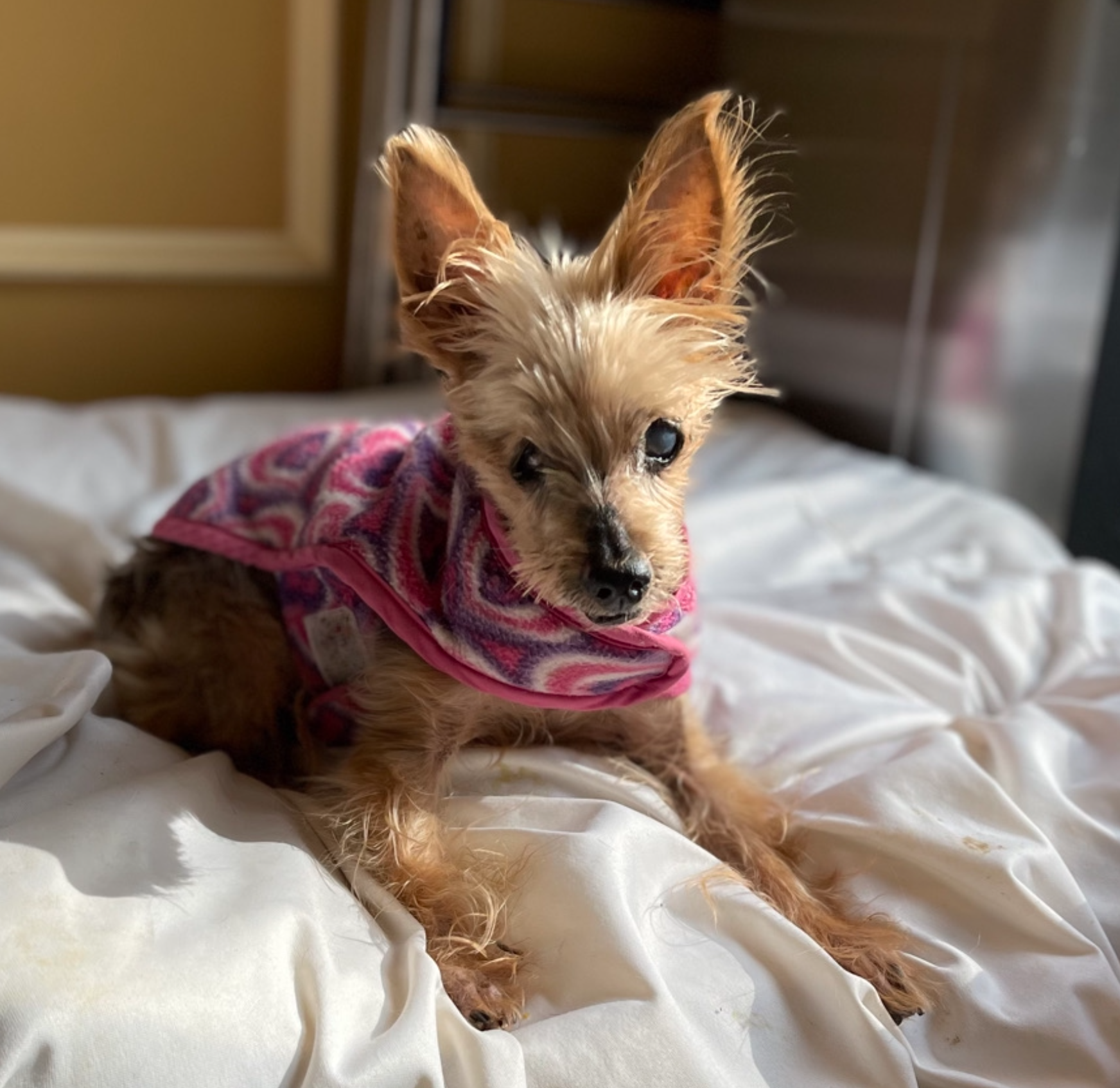Betty: RIP, Sweet Betty Boop. Betty joined the Leashes End family on 29 January 2022. While picking up hospice Yorkie Mickey, I came across sweet Betty (Bertha) … another senior Yorkie (at least 12 years old). Betty was heart worm positive, so she was not up for adoption. But the shelter allowed her to come home with me and Mickey because I promised to get her the best treatment available. In addition to being HW+, Betty was practically blind … but as sweet as can be. Betty ate like a Mastiff and beat all odds, coming through her heart worm treatment like a champ! Sadly, in July, 2022, Betty suffered multiple organ failure that had nothing to do with her heart. Oh, poor Betty. Run free, Sweetheart.